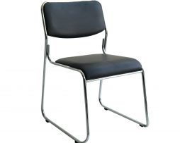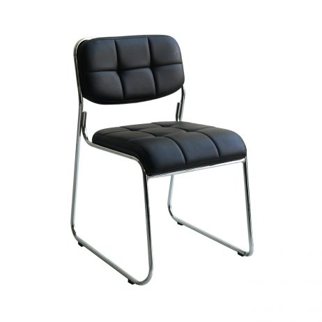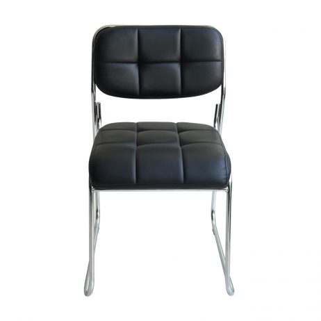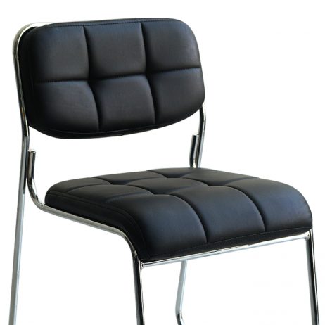 Silla fija con estructura de metal cromado, asiento y respaldo acolchado y tapizado en unipiel color negro.