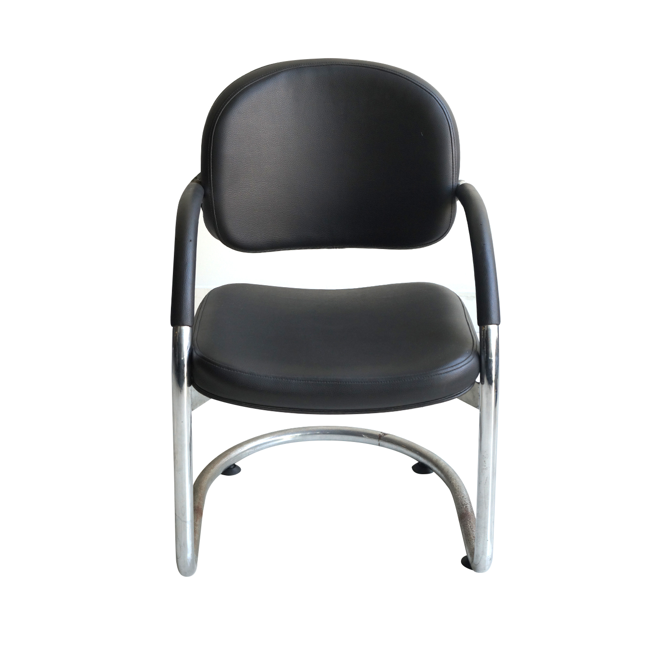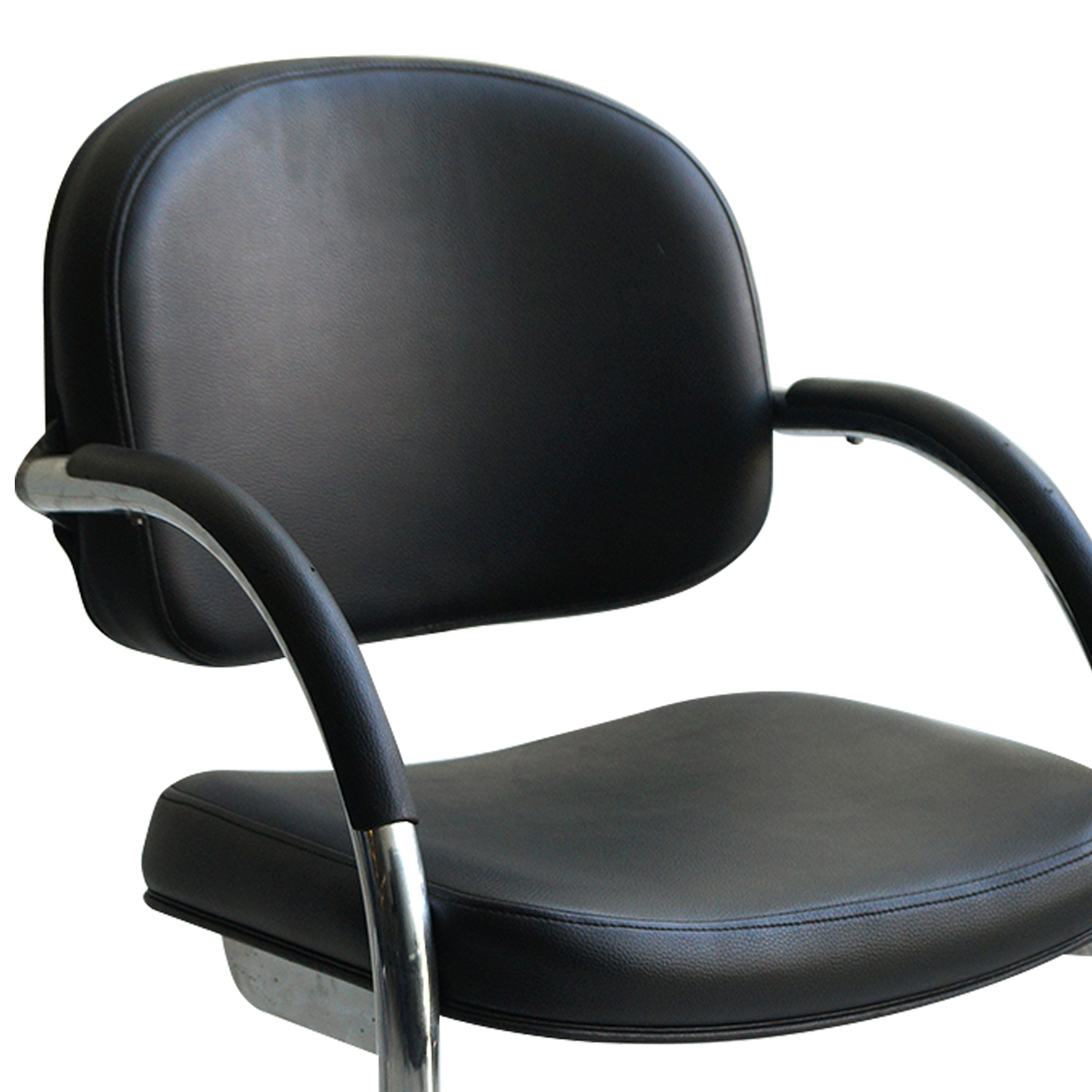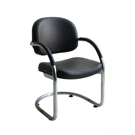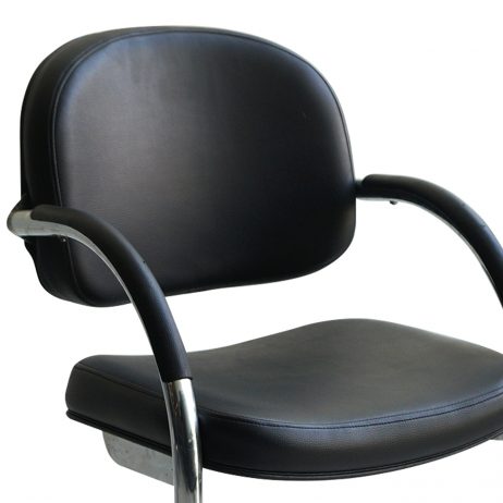 Sillón giratorio con diseño ergonómico y brazos graduables. Asiento y respaldo tapizado en tela tipo malla color negro. Base cromada de 5 aspas, deslizable mediante 5 garruchas de nylon. Sistema regulable.