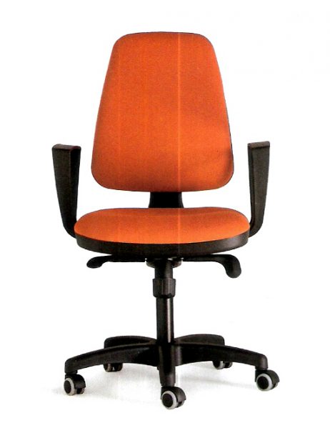 Silla giratoria con brazos, sistema regulable, respaldo en malla, asiento tapizados en tela, color a elegir.